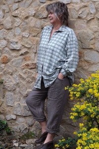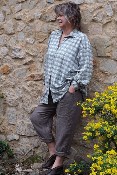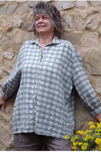 Chemise en viscose aspect froissée vintage à carreaux kaki. Manches longues.