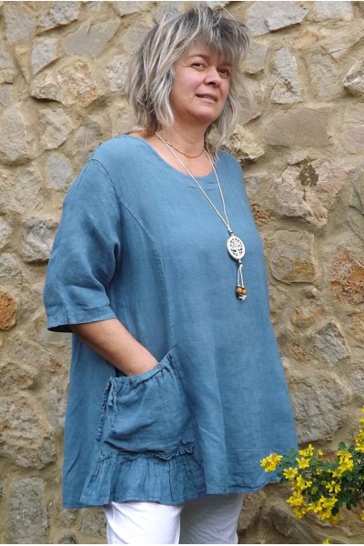 Notre tunique est fabriquée avec un très beau lin, doux et souple. Elle est agréable à porter cette tunique en lin grande taille de couleur café, le lin c'est bon pour la peau. Elle se porte facilement au quotidien dans un style décontracté et élégant, le lin est noble et écologique.